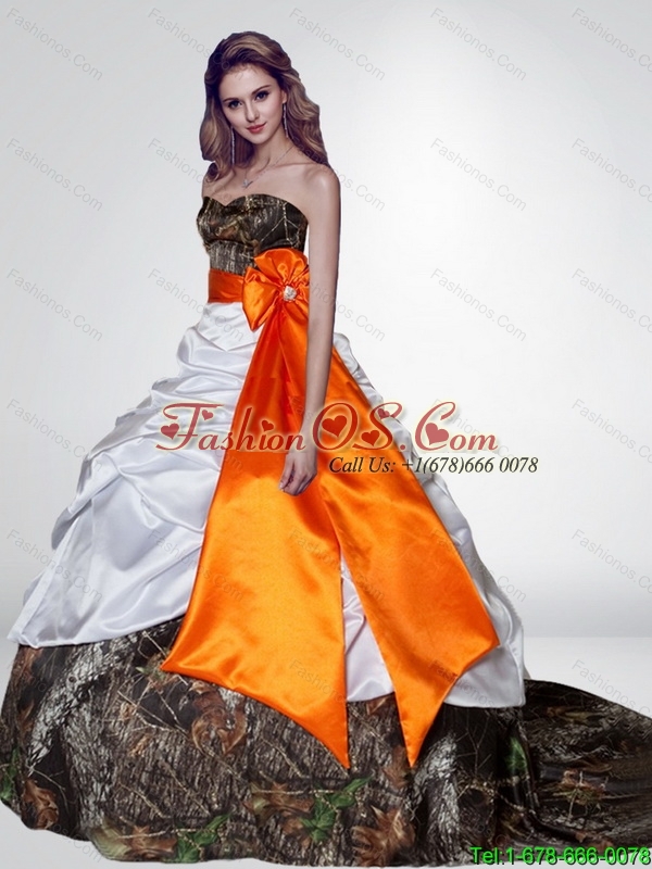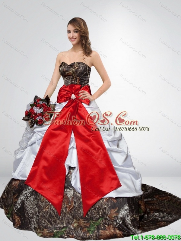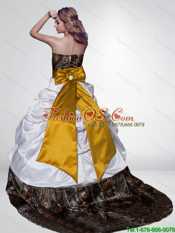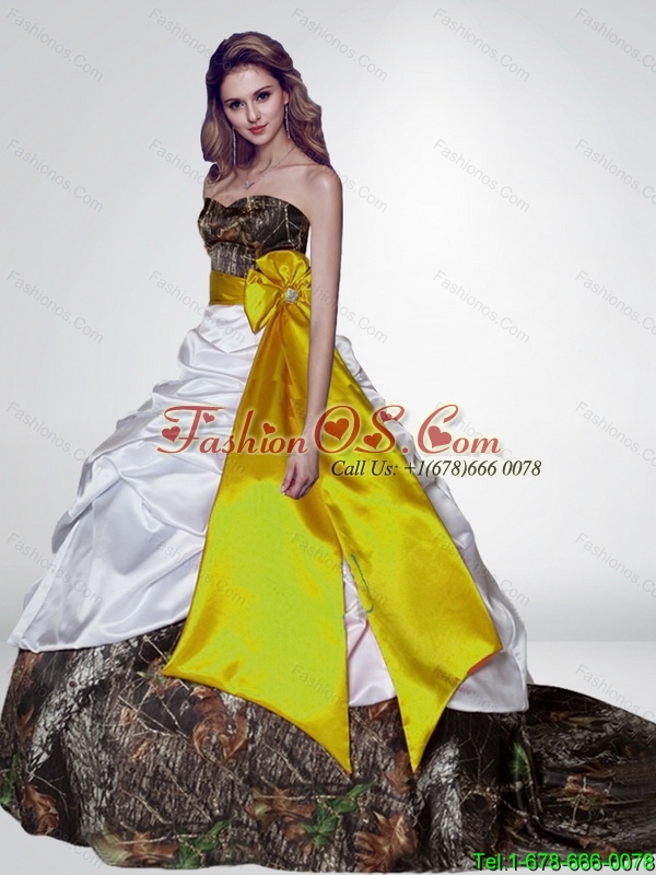 Beautiful Puffy 2015 New Wedding Dresses with Bowknot and Court Train