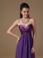 Beautiful Purple Empire Prom Dress Sweetheart Taffeta and Chiffon Beading Floor-length