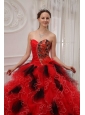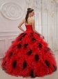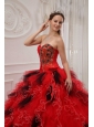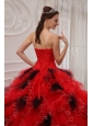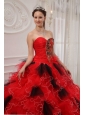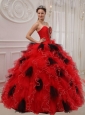 Home >  Quinceanera Dresses >  Fashionable Quinceanera Dresses > Beautiful Red and Black Quinceanera Dress Sweetheart Organza Beading and Ruch Ball Gown