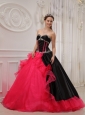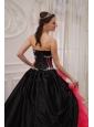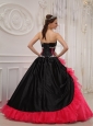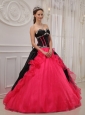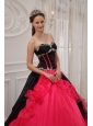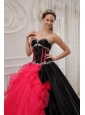 Beautiful Red and Black Quinceanera Dress Sweetheart Satin and Organza Appliques Ball Gown