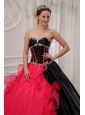 Home >  Quinceanera Dresses >  Pretty Quinceanera Dresses > Beautiful Red and Black Quinceanera Dress Sweetheart Satin and Organza Appliques Ball Gown