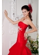 Beautiful Red Mermaid Sweetheart Prom / Evening Dress Taffeta Appliques Floor-length
