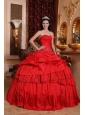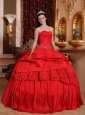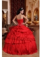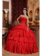 Beautiful Red Quinceanera Dress Sweetheart Taffeta Beading and Appliques Ball Gown