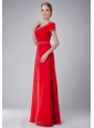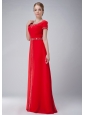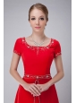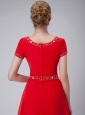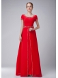 Beautiful Red Scoop Neckline Modest Mother Of The Bride Dress Chiffon Beading