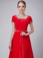 Home >  Special Occasion Dresses >  Mother of the Bride Dresses > Beautiful Red Scoop Neckline Modest Mother Of The Bride Dress Chiffon Beading