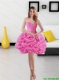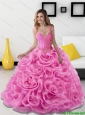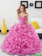 Beautiful Rose Pink 2015 Quinceanera Dresses with Beading and Rolling Flowers