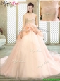 Beautiful Scoop Court Train Quinceanera Dresses with Hand Made Flowers