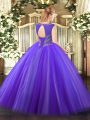 Beautiful Scoop Sleeveless Lace Up Vestidos de Quinceanera Baby Blue Tulle