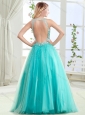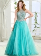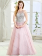 Beautiful See Through Scoop Beaded Modest Prom Dress with Open Back