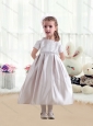 Beautiful Short Sleeves Satin Flower Girl Dresses with Beading