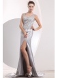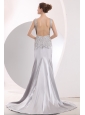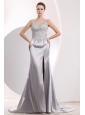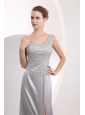 Home >  Prom Dresses >  Beautiful Prom Dresses > Beautiful Silver A-line Scoop Prom / Evening Dress Brush Train Satin Beading