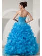 Beautiful Sky Blue A-line / Princess Prom Dress Sweetheart Floor-length Organza Beading