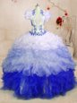 Beautiful Sleeveless Floor Length Beading and Ruffles and Sequins Lace Up Sweet 16 Quinceanera Dress with Multi-color