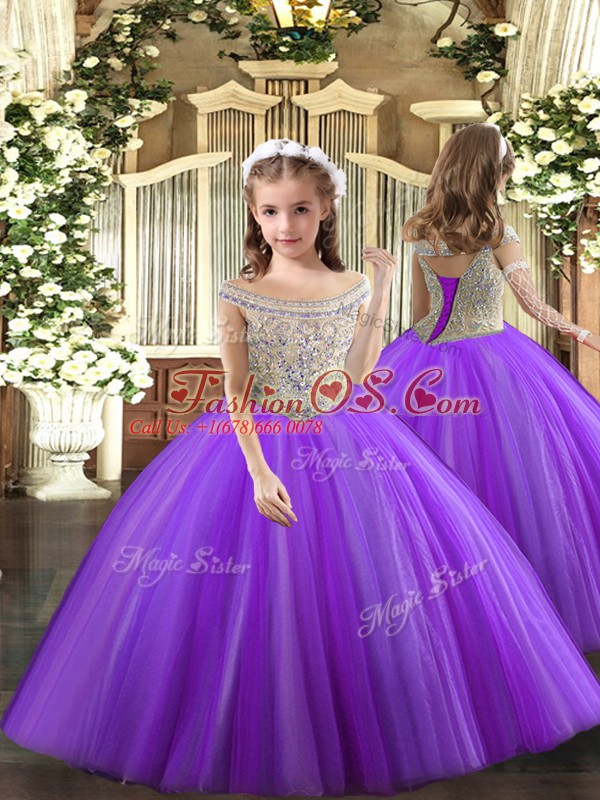 Home >  Special Occasion Dresses >  Beautiful Kids Pageant Dresses > Beautiful Sleeveless Floor Length Beading Lace Up Pageant Dress Wholesale with Purple