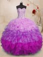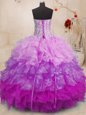 Beautiful Sleeveless Organza Floor Length Lace Up 15th Birthday Dress in Aqua Blue for with Beading and Ruffles
