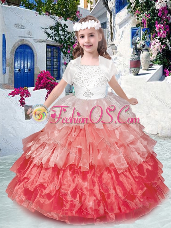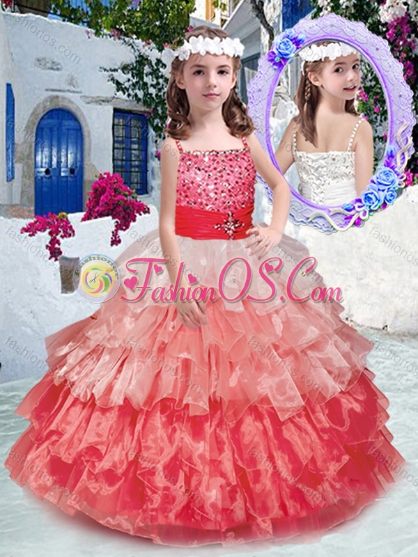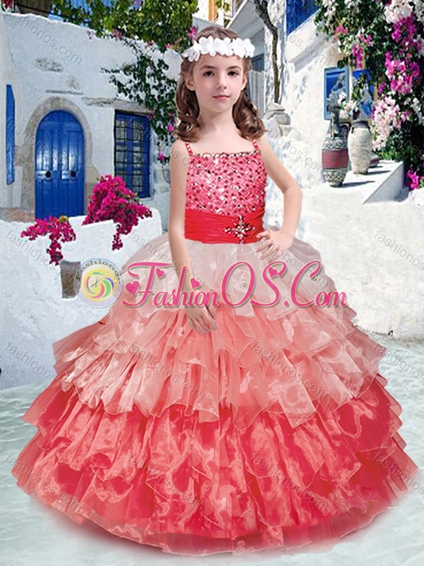 Beautiful Spaghetti Straps Little Girl Pageant Dresses with Beading and Ruffled Layers