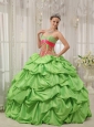 Beautiful Spring Green Quinceanera Dress Sweetheart Taffeta Beading Pick-ups Ball Gown