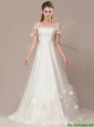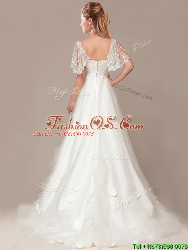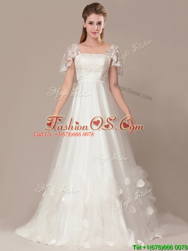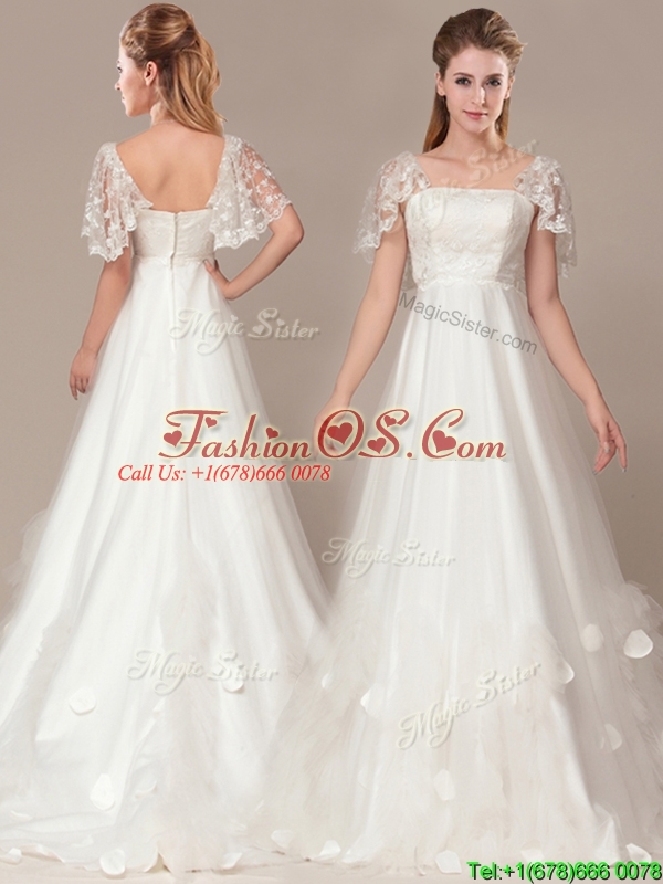 Beautiful Square Laced and Applique 2016 Wedding Dresses with Brush Train