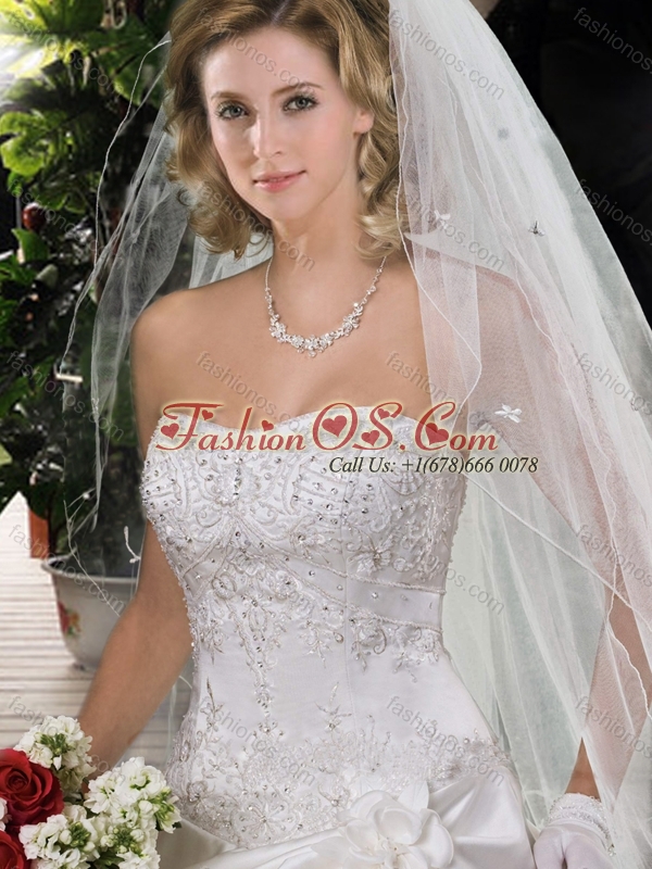Home >  Wedding Dresses >  Romantic Wedding Dresses > Beautiful Strapless Beading Chapel Train Wedding Dresses with Appliques