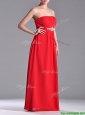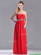 Beautiful Strapless Chiffon Red Dama Dress with Beading and Ruching