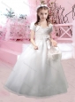 Beautiful Straps Applique and Bowknot Flower Girl Dress with Lace Up