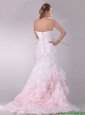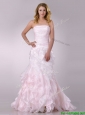 Beautiful Sweep Train Ruffled Light Pink Wedding Dress in Organza