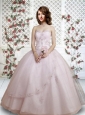 Beautiful Sweetheart Appliques and Hand Made Flowers Light Pink Quinceanera Gown