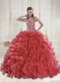 Beautiful Sweetheart Coral Red Quinceanera Dresses with Brush Train