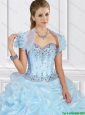 Beautiful Sweetheart Quinceanera Gowns with Beading and Pick Ups in Light Blue