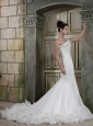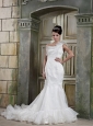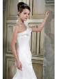 Beautiful Trumpet / Mermaid One Shoulder Chapel Train Satin and Organza Wedding Dress