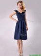 Beautiful V Neck Navy Blue Empire Mother of the Bride Dress with Cap Sleeves
