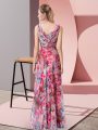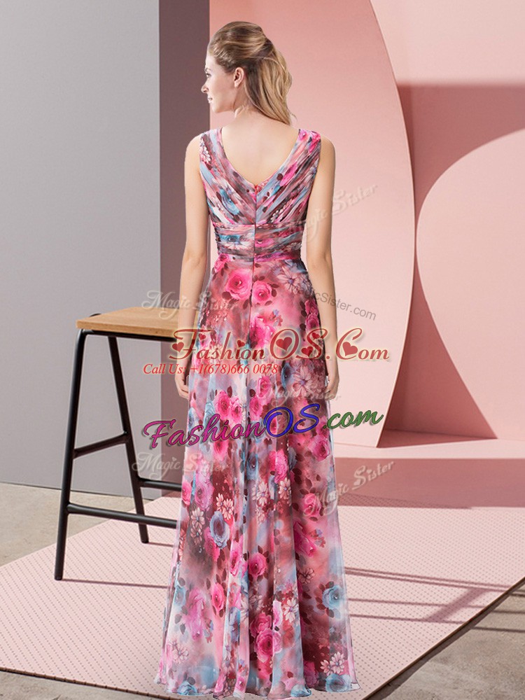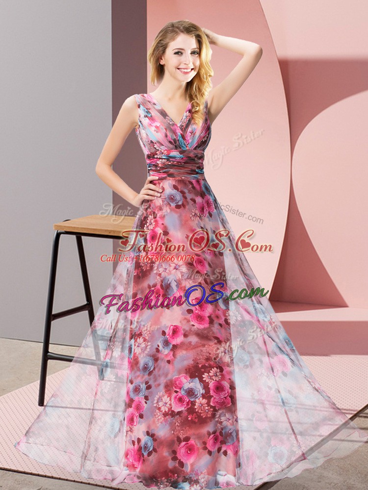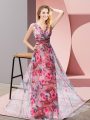 Beautiful V-neck Sleeveless Printed Prom Evening Gown Pattern Zipper
