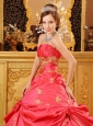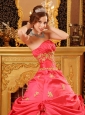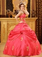 Home >  Quinceanera Dresses >  Pretty Quinceanera Dresses > Beautiful Watermelon Red Quinceanera Dress Ball Gown Strapless Taffeta Beading and Appliques Ball Gown
