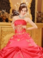 Beautiful Watermelon Red Quinceanera Dress Ball Gown Strapless Taffeta Beading and Appliques Ball Gown