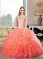 Beautiful Watermlon Ball Gown Sweetheart and Beaded Quinceanera Dresses For 2015 Summer