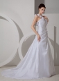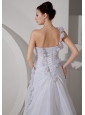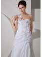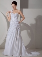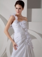 Beautiful Wedding Dress A-line One Shoulder Hand Made Flowers Court Train Taffeta