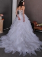 Beautiful Wedding Dress A-line Sweetheart Beading and Ruffles Chapel Train Organza