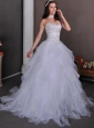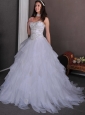 Home >  Wedding Dresses >  Elegant Wedding Dresses > Beautiful Wedding Dress A-line Sweetheart Beading and Ruffles Chapel Train Organza