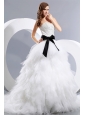Beautiful Wedding Dress Appliques and Bow A-line Sweetheart Chapel Train Taffeta and Tulle