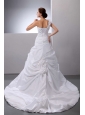 Beautiful Wedding Dress With One Shoulder A-line Pick-ups Court Train For Custom Made