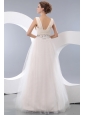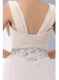 Silhouette: A-line Neckline: Straps Waist: Fitted Hemline/Train: Floor-length Sleeve Length: Sleeveless Embellishment: Beading, Ruch Back Detail: Zipper-up Fully Lined: Yes Built-In Bra: Yes Fabric: Tulle Shown Color: White(Color & Style representation may vary by monitor.) Occasion: Prom, Formal Evening, Graduation, Celebrity, Military Ball Season: Spring, Summer, Fall, Winter