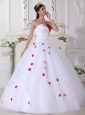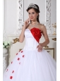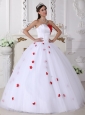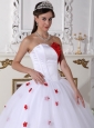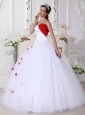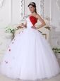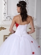 Beautiful White and Red Quinceanera Dress Sweetheart Satin and Tulle Appliques Ball Gown