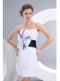 Beautiful White Column Strapless Prom / Homecoming Dress Taffeta Bowknot Mini-length