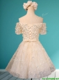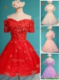 Beautiful White Off the Shoulder Short Sleeves Prom Dresses  with Appliques and Beading