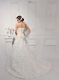 Beautiful White One Shoulder Lace Up Ruffled Layers and Ruching and Hand Made Flower Wedding Dresses Brush Train Sleeveless