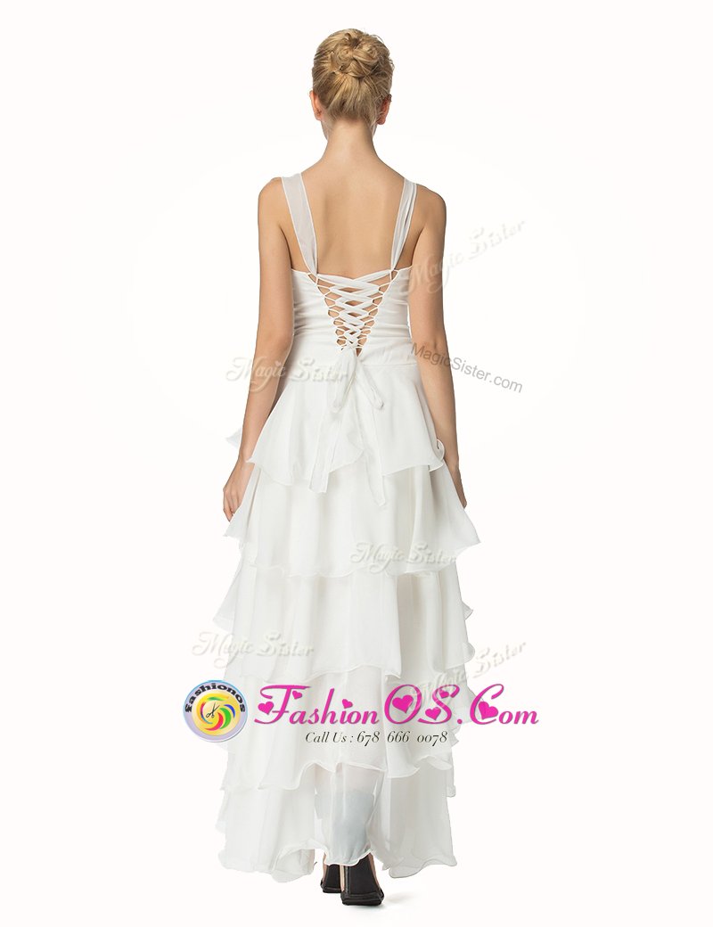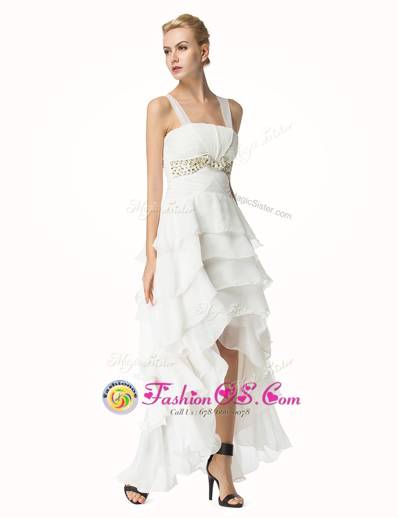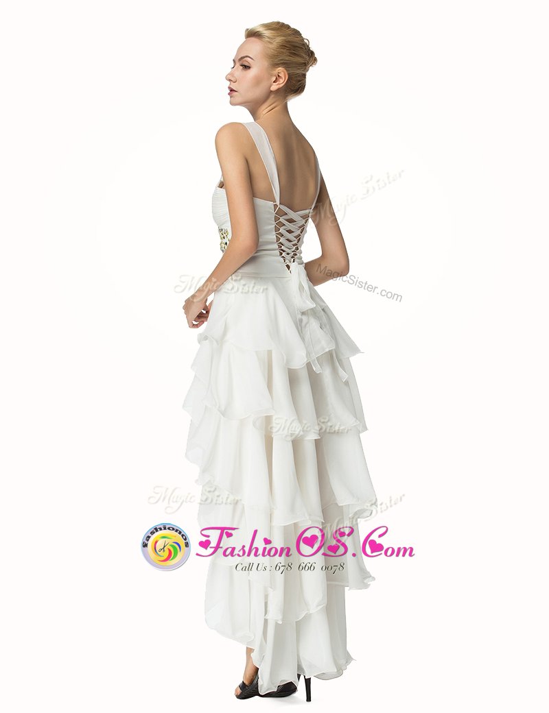 Home >  Prom Dresses >  Perfect Prom Dresses > Beautiful White Organza Lace Up Homecoming Dress Sleeveless High Low Beading