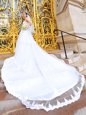 Beautiful White Organza Lace Up Sweetheart Sleeveless With Train Wedding Dresses Brush Train Beading and Lace and Appliques