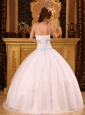Beautiful White Quinceanera Dress Strapless Satin and Organza Beading Ball Gown