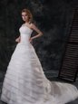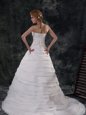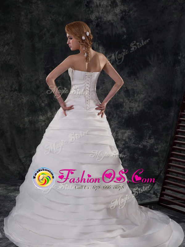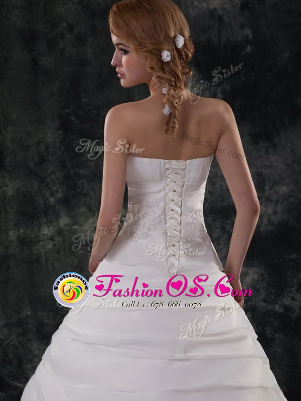 Home >  Wedding Dresses >  Fashionable Wedding Dresses > Beautiful White Wedding Gown Wedding Party and For with Beading and Appliques and Ruffled Layers Strapless Sleeveless Brush Train Lace Up