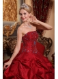 Beautiful Wine Red Quinceanera Dress Strapless Taffeta Beading Ball Gown